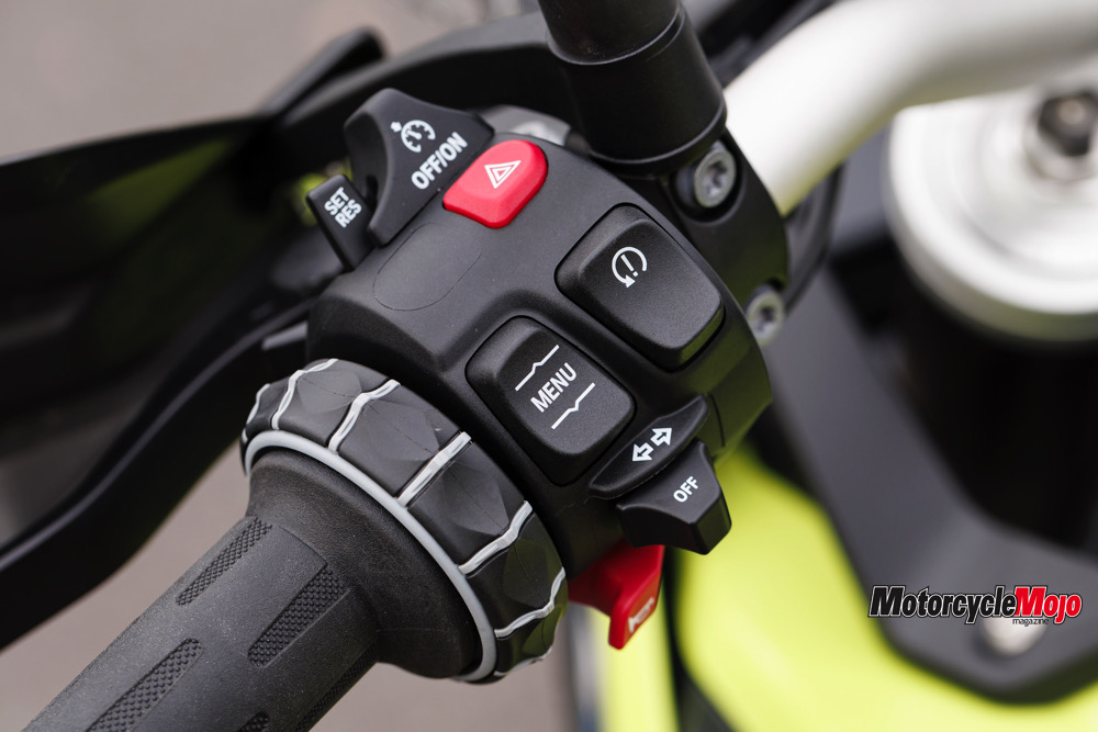 The rear sprocket now sports three more teeth (47 teeth versus the previous 44), with the gear reduction multiplying the sensation of more low-down grunt, which was particularly handy for the steep hills we encountered off-road. All that low-end grunt saved my bacon when I accidentally