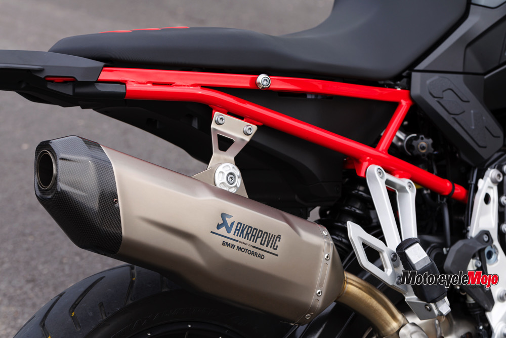 It’s important to recognize that this is a completely new platform from BMW, not to be compared to the previous F850 series. The F900GS is built up from a completely new chassis, upgraded suspension and revised engine. Not to mention a substantial weight loss of 14 kilograms. This is mainly due to 4.5 kg saved by switching to a plastic fuel tank (from the previous model’s steel version), as well as a 2.4 kg loss on the rear end, and 1.7 kg lost by opting for an Akropovič silencer, which is now stock on all models.