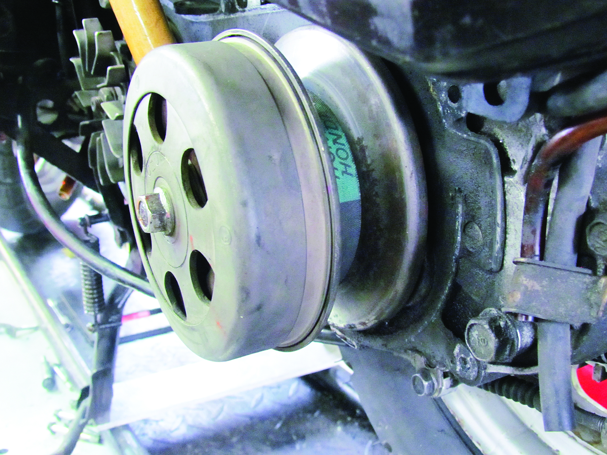 There’s one thing missing: The clutch. All bikes have a clutch between the engine and the gearbox: it disconnects the engine from the transmission, and it is needed to get the bike going from a stop and to facilitate gear changes. A CVT also has a clutch, but it, too, is automatic. Its centre is connected to the engine, either directly or through the belt, and it contains a series of spring-loaded friction shoes. These ride inside an outer drum that connects to the drive pulley.