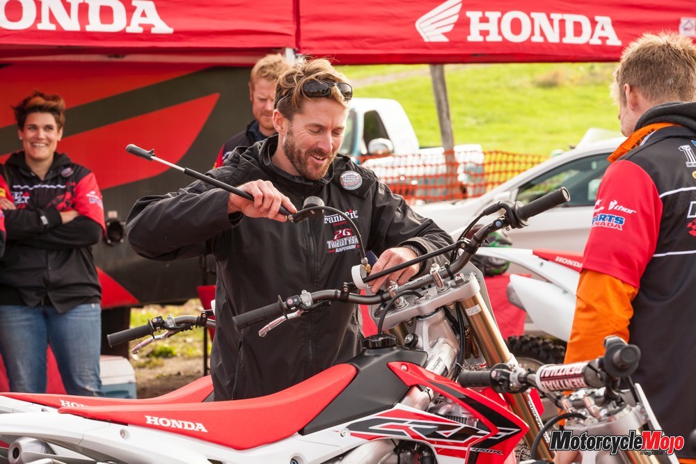I enjoy getting out and playing in the dirt and on bush trails as much as I like street riding. But being generally a street rider, it isn’t often that I get to sample a handful of brand-new motocross bikes. Honda Canada invited Motorcycle Mojo to attend a training session at Flat Track Canada’s home track in Paris, Ontario, for basic training and to sample these specially modified Honda motocross bikes on the dirty oval.