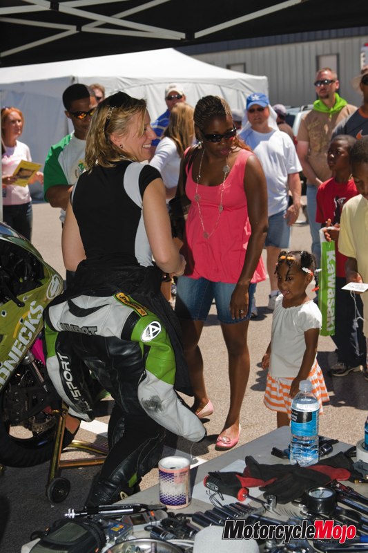 I just finished racing the AMA Supersport race at Barber Motorsports Park in Birmingham, Alabama. During lunch hour on Sunday, the factory teams held autograph signings outside their trailers. My teammate, Josh Galster and I were hanging out in our little privateer pits eating lunch when a family with a little girl stopped by to look at our bikes. I heard the dad say, “See, it is a girl that is racing out there with the boys! I told you!” The little girls eyes were wide and bright, she must have been about five-years-old.