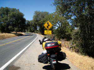 Just finished reading your account of riding the Mendocino Hwy. I just finished the annual Three Flags Classic Rally, and if that highway sign you saw made you grin, I’d like to e-mail you a pic of a sign I spotted just west of Red Bluff, Ca. on Hwy 36. I went about a mile past the sign and just HAD TO TURN AROUND and get a pic. I was smiling so hard, thought I was gonna stretch my helmet.
