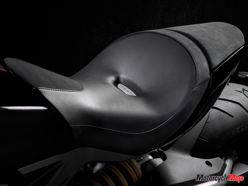 The bike proves comfortable enough during our 260 km test loop, with the firm, sculpted seat providing good support. I’m not sure a passenger would be as well received, because the XDiavel has one of the smallest, most precarious passenger pillions I’ve seen in a long while. I’d advise anyone sitting on its abbreviated perch to hold on tight, because a fat rear tire waits to greet his or her buns if you use the throttle with indiscretion. The alternative, and I’d highly recommend it, is to get the passenger backrest, or you risk severing your relationship.