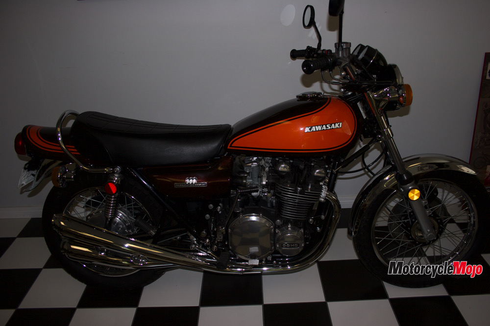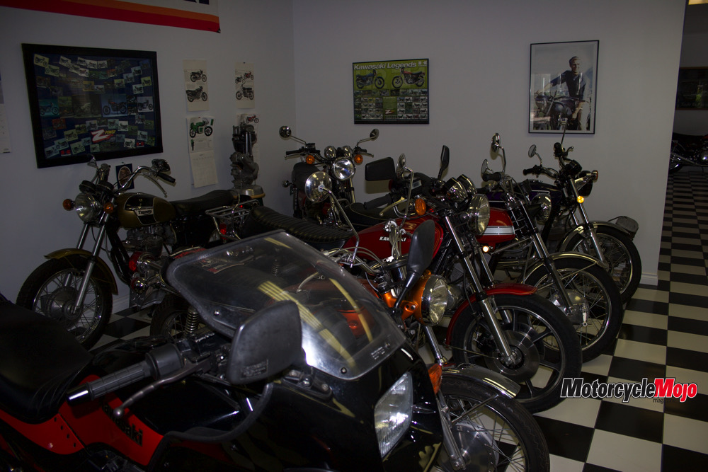 Once inside the showroom, my first thoughts upon seeing the collection lining the walls were memories of the motorcycle parking area at my high school with all the polished chrome and vivid paint colours from those eras — something you don’t see much of anymore.