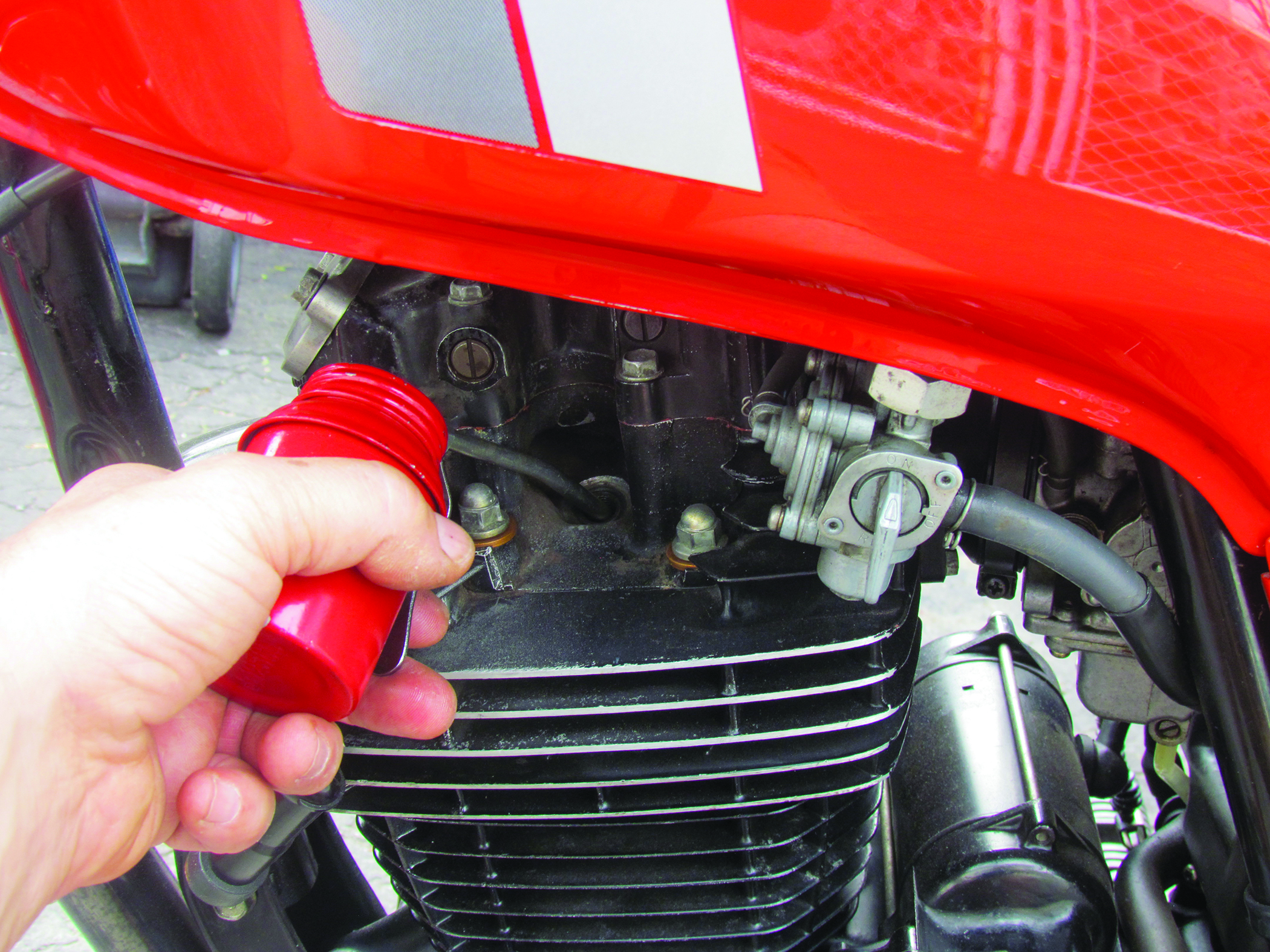 How you treat the fuel depends on whether your bike is carbureted or fuel-injected. For decades, I have owned motorcycles with carburetors, and my winter-prep procedure has proven foolproof. I recommend turning off the petcock — or pinching the fuel line if the petcock doesn’t have an “off” position (some vacuum operated petcocks have a “prime” position, and no “off”) — and running the bike until it stalls. Alternately, if the carburetor drain screws are easily accessible, use them to drain the fuel, but do so responsibly; don’t just spill the fuel on the ground.