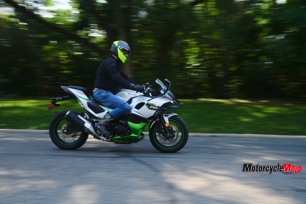 That said, there’s little question that motorcycles, like other forms of mobility, must reduce their carbon footprint. All motorcycle manufacturers are looking for ways to reduce tailpipe emissions, be it with bio-fuels, synthetic fuels made from sequestered CO2 or swappable batteries. One of the manufacturers at the forefront of these alternatives is Kawasaki which, along with battery-powered models, is working on hydrogen-fuelled internal combustion engines and, the subject of this review, gas/electric hybrids.