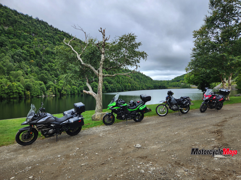 “Where are you going?” was the only question asked of me baking in the sun on my 2015 V-Strom 650. “Have you ever been convicted of a crime” was the question to John, sweating on his red 2015 V-Strom 650, while Dean on his 2020 Suzuki DR650 and Jim riding his 2022 Kawasaki Versys 1000 were waved through with the simple statement “Are you with them?” After filling up with cheap fuel on the American Mohawk Reserve, we swept past Fort Covington on our way to Malone for a stop at Price Chopper for supplies and the Jug Shop for liquid necessities.