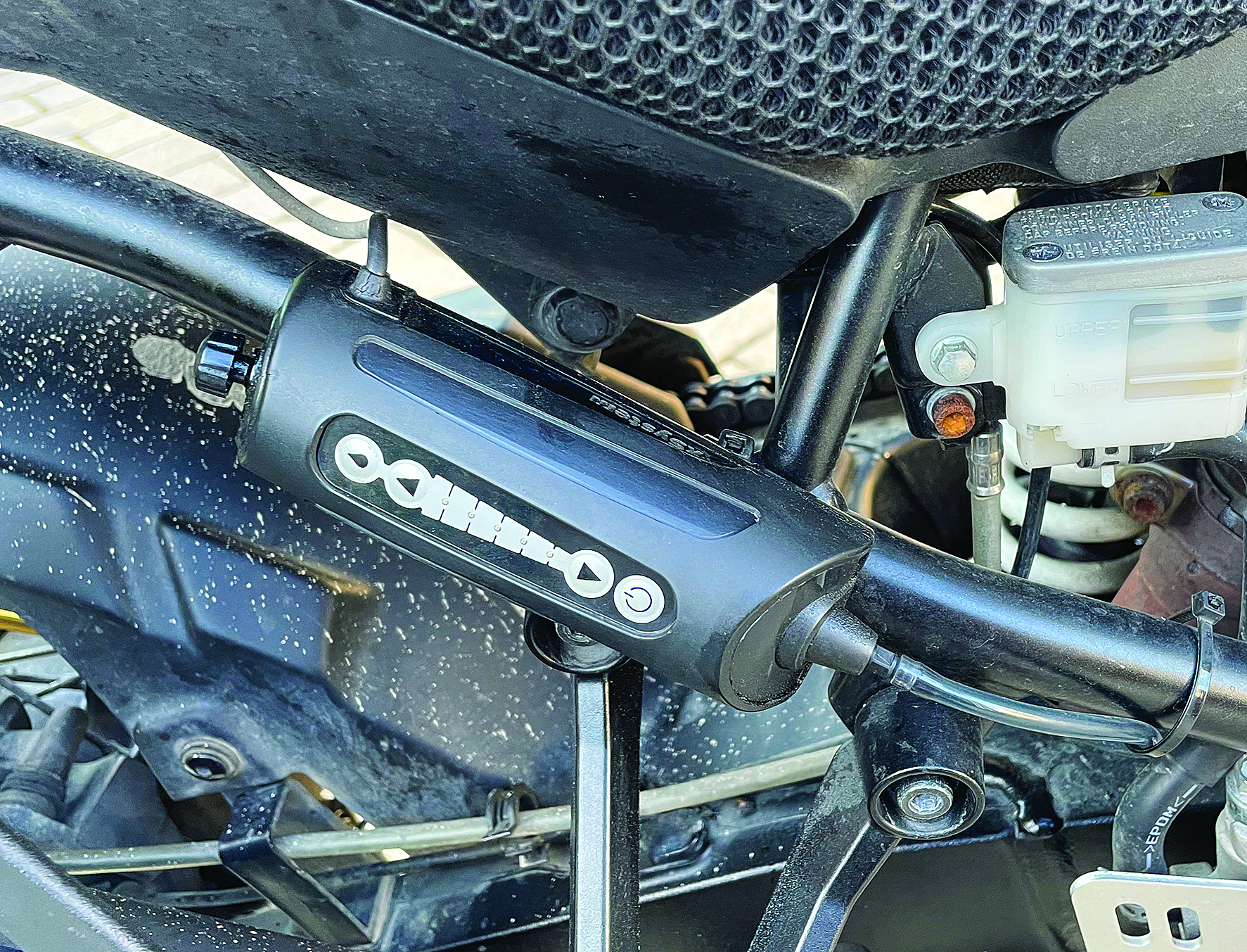 Installation was a pretty much a breeze. For one thing, the kits provided by Scottoiler are extremely comprehensive and include all the bobbins, attachments and hoses that a multitude of different applications would require. And the xSystem, unlike the original vSystem, requires but a simple connection to the battery, which means to get the fluid lines laid out and the dispenser installed, pointing the oil at the rear sprocket took about an hour. Setup was as much of a doddle as priming the system: basically fiddling with the main unit’s “+” (increase) and “-” (decrease) buttons till a little oil dribbled out of the dispenser onto the rear sprocket. Once I refilled the container, I was ready for some real maintenance-free — or, more accurately, automated maintenance — kilometres.