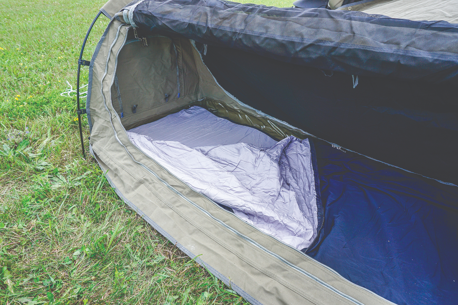 Set-up is easy and once it’s completed, the Goose is free-standing so you can move it into position before staking it down. There are D-rings at each corner for tent pegs if you wish, and two tent pegs are required to hold the gables taut on each end. As mentioned earlier, the outer wrap of the Goose acts as the floor outside the tent where you can take off your boots so you don’t track grass or dirt into your bed.