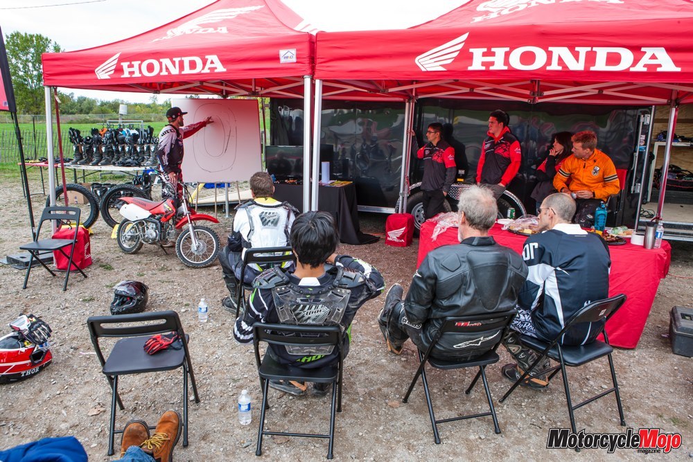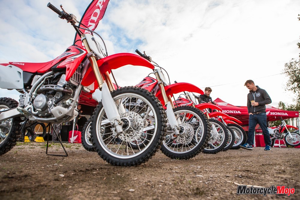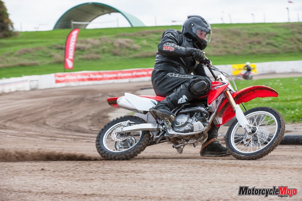 I enjoy getting out and playing in the dirt and on bush trails as much as I like street riding. But being generally a street rider, it isn’t often that I get to sample a handful of brand-new motocross bikes. Honda Canada invited Motorcycle Mojo to attend a training session at Flat Track Canada’s home track in Paris, Ontario, for basic training and to sample these specially modified Honda motocross bikes on the dirty oval.
