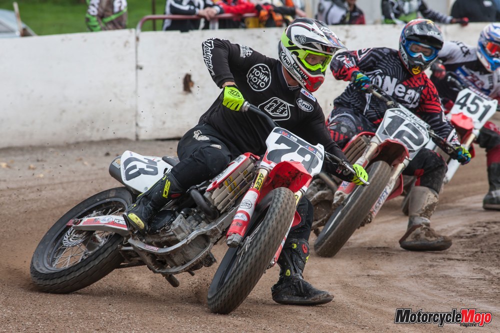 Flat-track racing, also commonly known as dirt track, consists of various size motorcycle classes racing on tracks made from hard-packed dirt or clay, or a mixture of the two, and that range from an eighth mile to half-mile ovals, at least in the sanctioned races under the Flat Track Canada banner.