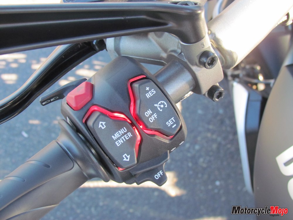 Swinging a leg over the XDiavel reveals a low seat with an easy reach to the ground, the reach to a wide handlebar is relatively modest and a cruiser-typical forward stretch to the foot controls. I don’t care much for the feet-ahead riding position, but the good news is that if you’re like me, you don’t have to live with it. Ergonomics are adjustable to 60 different positions via three different handlebars (+25 mm and -25 mm fore and aft options), five different seats (four optional, including +20 mm and -10 mm heights) and four-position foot-peg mounts (+/- 22 mm