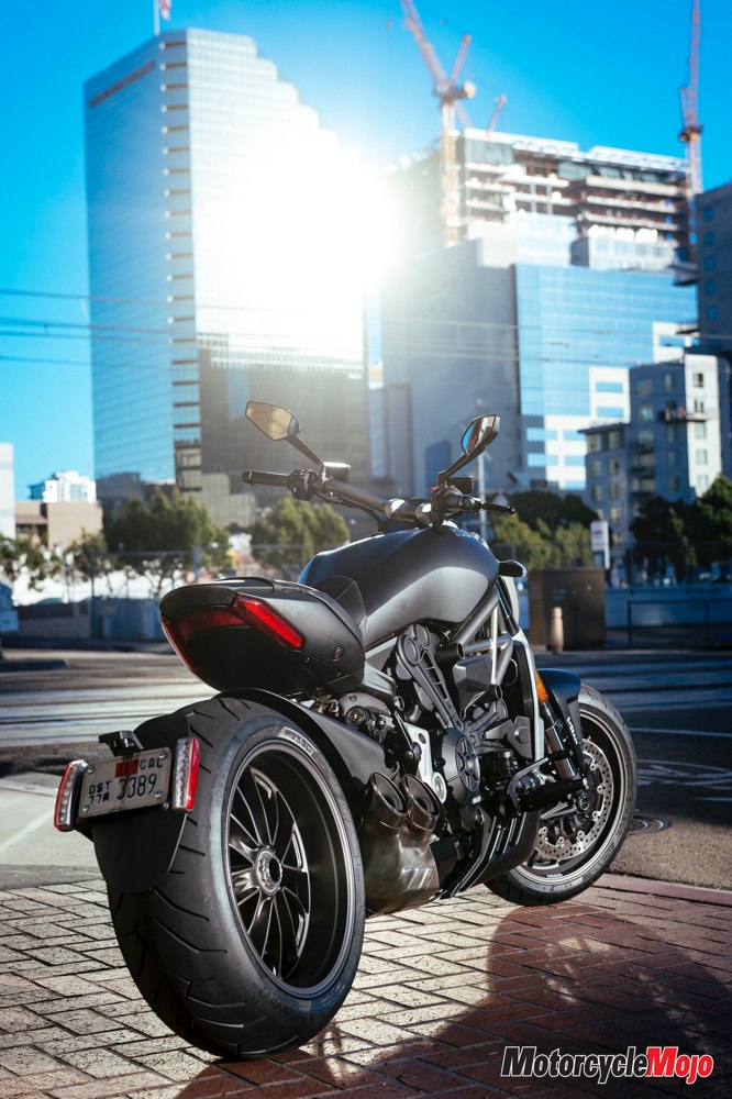 The 2016 XDiavel, Ducati’s first bona fide cruiser since that ill-fated bike, will be much more memorable. This beast of a machine, which I’ve been invited to ride in sunny San Diego, is a cruiser like no other. It’s an Italian take on a North American motorcycling phenomenon, and even though Ducati has embraced the tagline “Low-speed excitement” to emphasize its penchant for boulevard crawling, riding it reveals that those Italian translators probably misunderstood the definition of “low speed” when translating their marketing literature.
