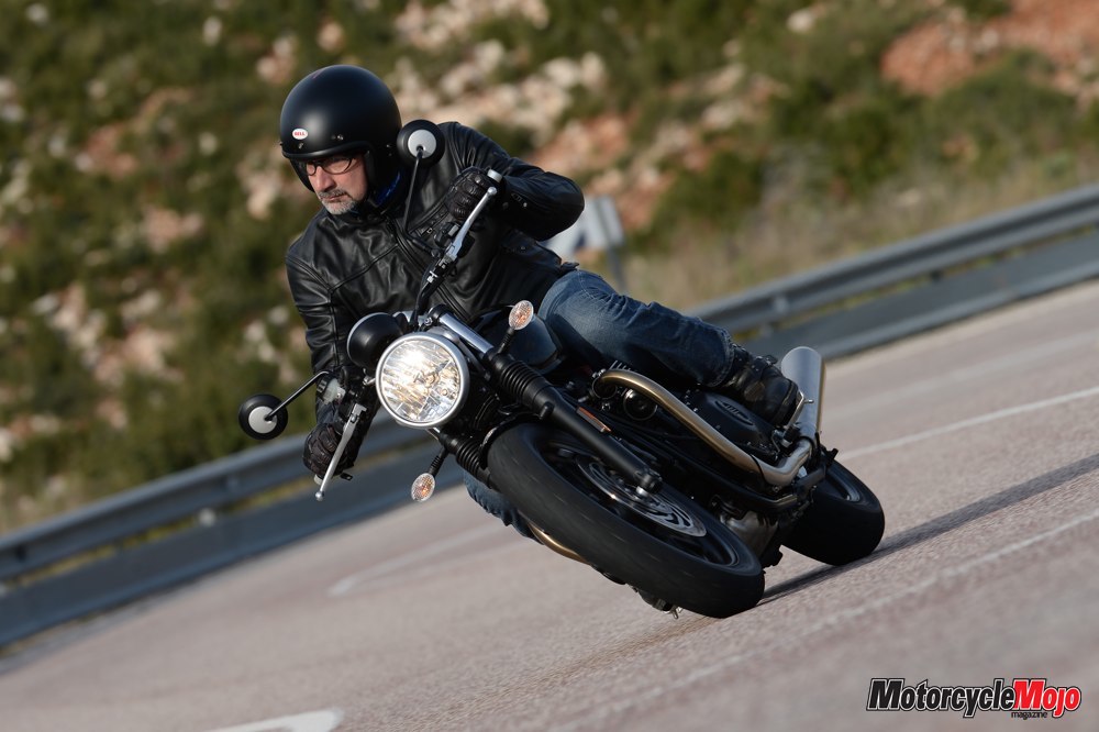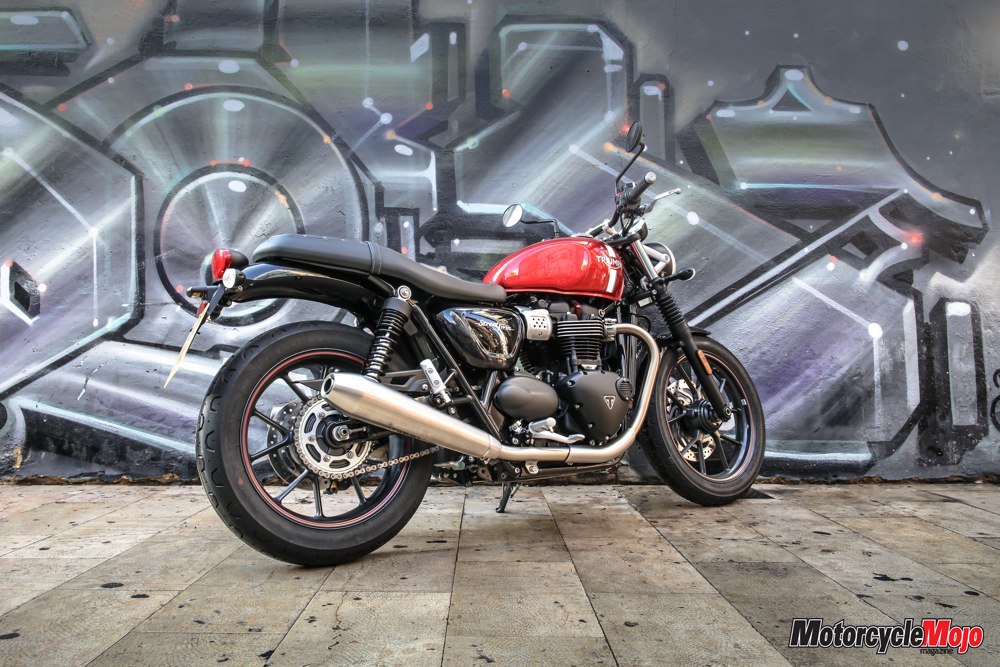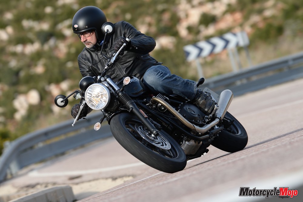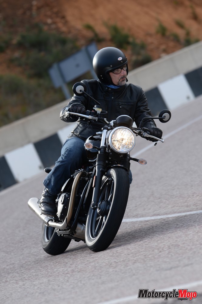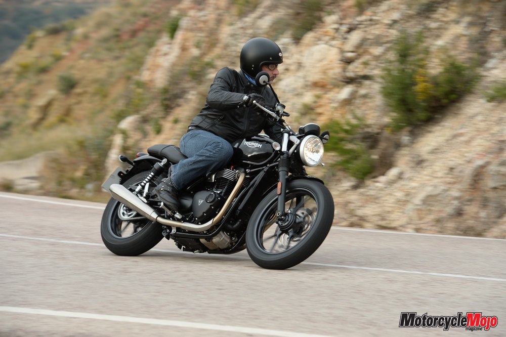 Triumph held the Street Twin’s media launch in Valencia, Spain, in early December. Approaching the long row of test bikes before we headed out for a 220 km ride through the mountains west of the city, I admired the Street Twin’s unembellished styling. There’s an appealing mechanical simplicity to the Street Twin; the folks at Hinckley haven’t tried to wow you with bedazzling paint schemes or flashy chrome – it is instead refreshingly understated. It captures instantly the essence of what a classic Brit bike has always been in my eyes: simple, slender and, if not overly sophisticated, at least quite charming.