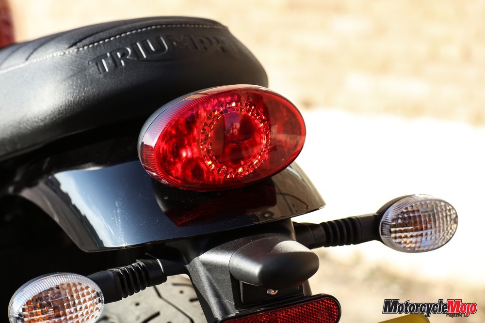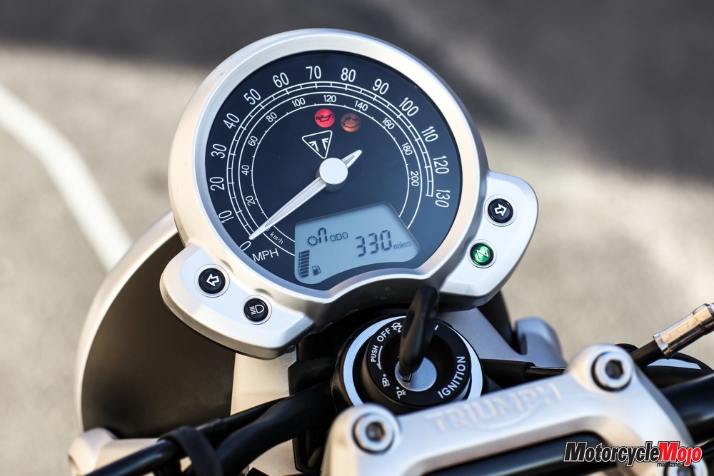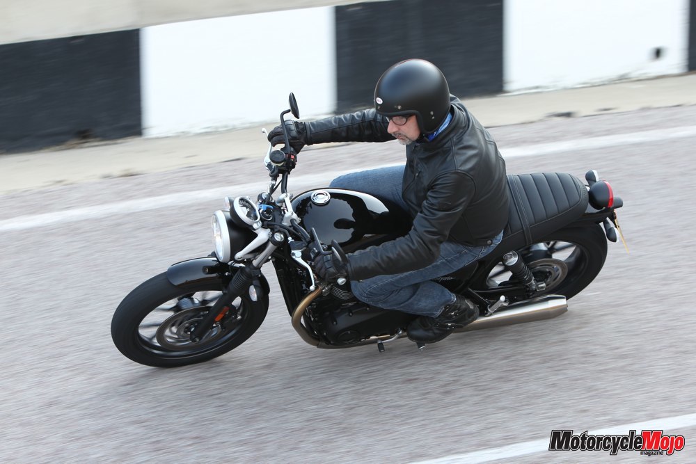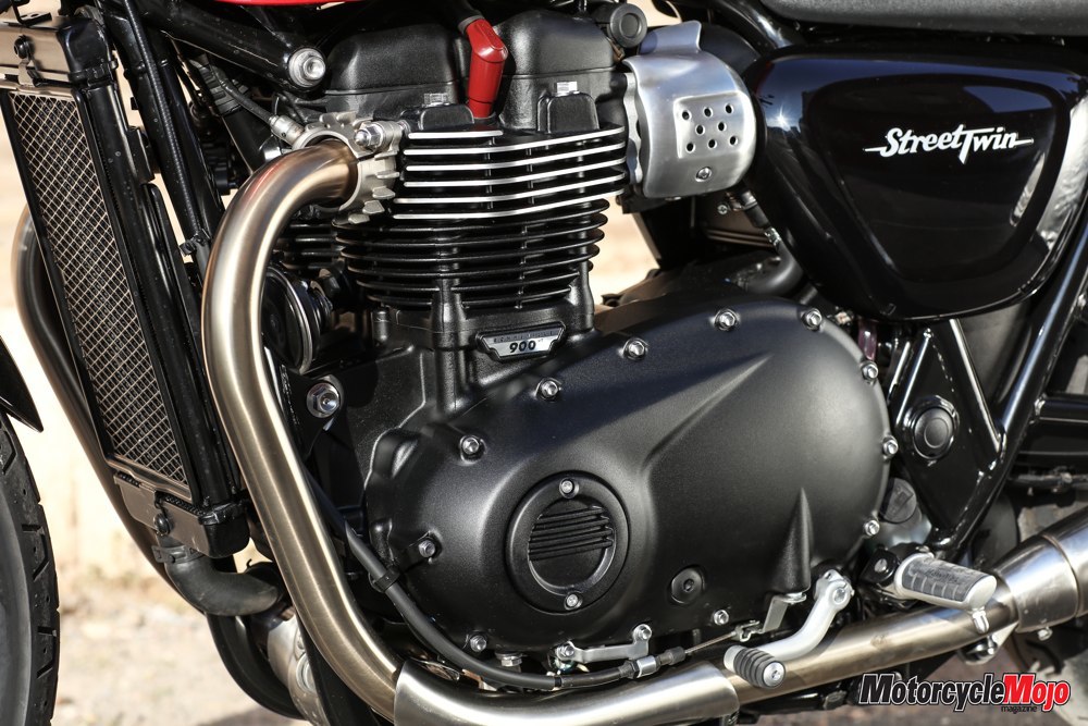 The engine is rigidly mounted to the frame, but the dual counterbalancers combine with the vibration-reducing 270-degree crankshaft to make the Street Twin among the smoothest motorcycles I’ve ridden. The mirrors are small but offer an unobstructed rear view, and remain almost perfectly clear regardless of the speed.