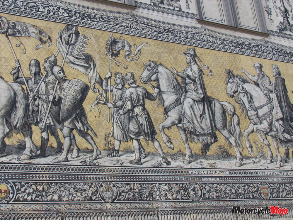 I was completely enthralled by the beauty of the city, lined with cobblestone streets and sidewalks, and with baroque, Gothic and Romanesque architecture characterizing the metropolis – absolutely stunning. We had a non-riding rest day in Prague, so the two Toms took us on a walking tour of the seemingly laidback city, while towering can’t-miss-Murray became our designated locating beacon, easily spotted from quite a distance in his red ball cap. We hit the road again the next morning, and I made a mental note to return to Prague, because a full day is nowhere near enough time to experience the historical capital of Bohemia. Riding with the Brazil Nuts This day I chose to follow Hairy Tom and the Brazil Nuts. We headed for Dresden, Germany, through rolling hills and farmland, in 27-degree sunshine, and finally no rain (switching Toms paid off). We made a rest stop in a small town, but just before leaving, we were thrown into a key-searching frenzy, as one of the Brazilians lost his key. By pure chance, it was discovered at the bottom of an enclosed plastic recycling bin, where the unlucky rider had inadvertently thrown it along with the remnants of his banana, which didn’t belong there in the first place. It was eventually fished out with a wire on the end of a long stick.