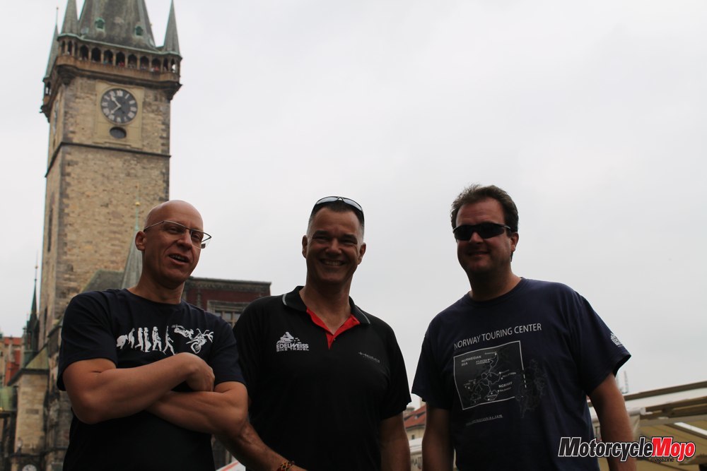 We left Budweis and headed for Prague. One of the stops along our route was in the postcard-picturesque town of Český Krumlov. The entire town looks more like the set for a medieval adventure movie, with a prerequisite castle, which is guarded by a pair of bears. You read that right. Along the way to Prague, Kastner let Bull, Pratt and me by a couple of times, letting us set the pace. I followed Bull, who, again, set a holy-crap-that’s-fast pace on his RT. Shiny Tom wasn’t one to miss out on a good ride, and joined us for the blitz into Prague. Arriving in the Czech capital, we ran into a downpour with rivers of water running through the streets. Meanwhile, the Brazil Nuts had again eluded the rain following Hairy Tom. It was time to change Toms, I thought.