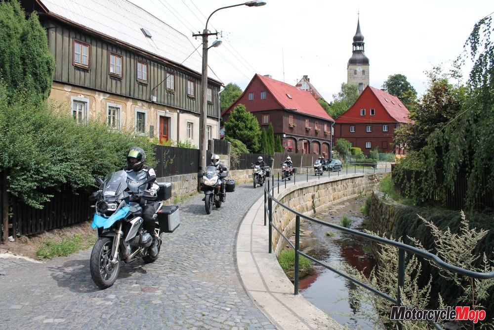 Because of the tour group’s size, riders were split into two groups, each one following a different Tom, along a slightly different route. Group selection was voluntary, so on the first day I rode with Kastner and four other riders. The pace was engaging as we crossed into the Czech Republic, though we got some heavy rain before lunch. Thankfully, it stopped raining as we hit the road again. The other group, we later learned, did not see a drop of rain.