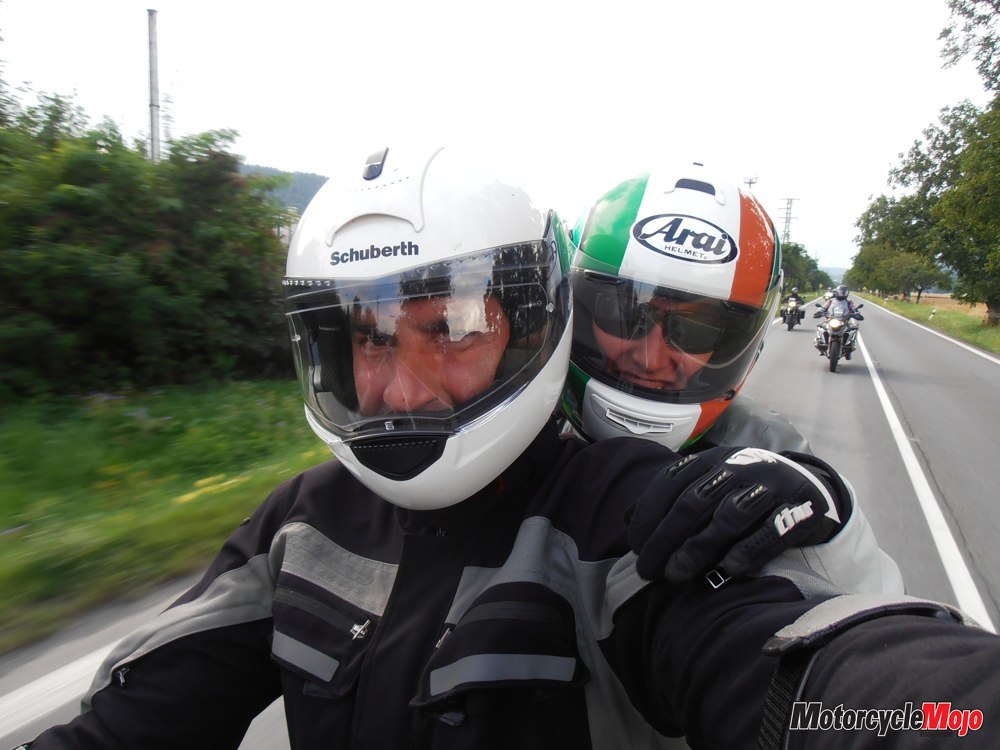 Later in the day, just before arriving at our destination, the roads got much tighter, so Kastner let a couple of us go by to set our own pace. I led for a while, but the earlier rain had wet the pavement, so I rode cautiously. Kastner, who often takes part in track days, caught up and blasted by, followed closely by American Barre Bull and his passenger, wife Sandra, on a BMW R1200RT.