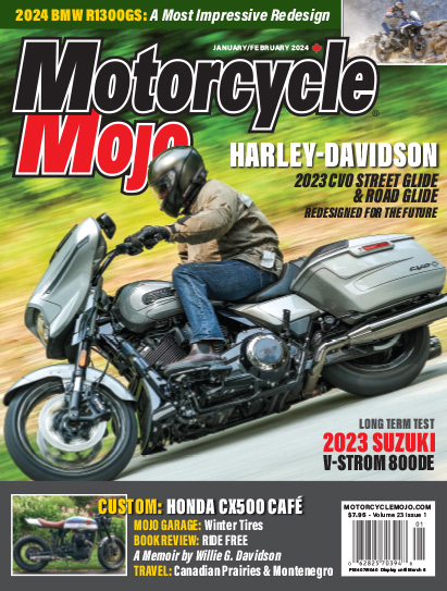 In this issue we bring you test rides on the 2024 BMW R1300GS and the 2023 Harley-Davidson CVO Street Glide and Road Glide. We also feature an introduction to the Suzuki V-Strom 800DE. Our travel features include checking out dinosaur bones in the Canadian Prairies and riding in spectacular Montenegro. Our custom feature is a Honda CX500 built from the ground up and drastically modified. We also highlight the inductees into the 2023 Canadian Motorcycle Hall of Fame.
