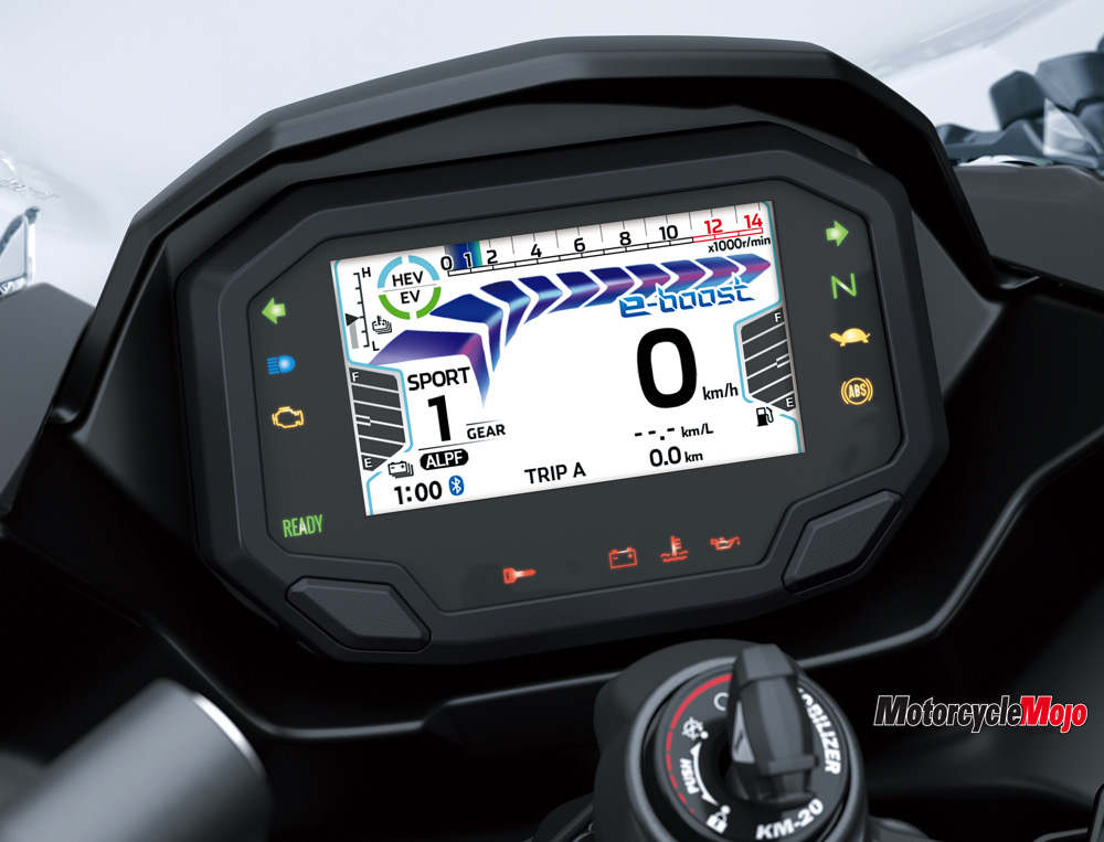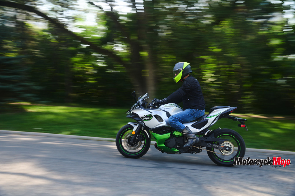 That said, there’s little question that motorcycles, like other forms of mobility, must reduce their carbon footprint. All motorcycle manufacturers are looking for ways to reduce tailpipe emissions, be it with bio-fuels, synthetic fuels made from sequestered CO2 or swappable batteries. One of the manufacturers at the forefront of these alternatives is Kawasaki which, along with battery-powered models, is working on hydrogen-fuelled internal combustion engines and, the subject of this review, gas/electric hybrids.