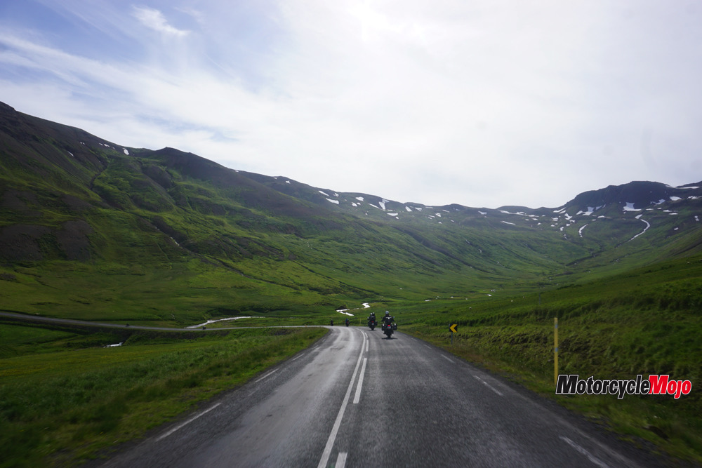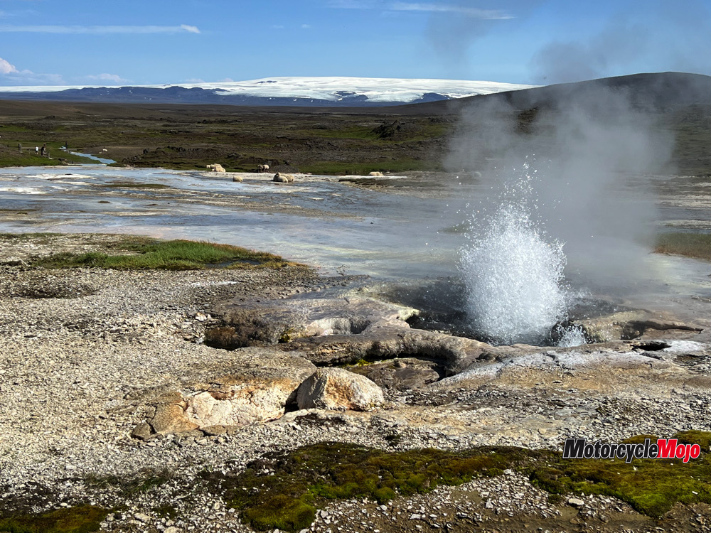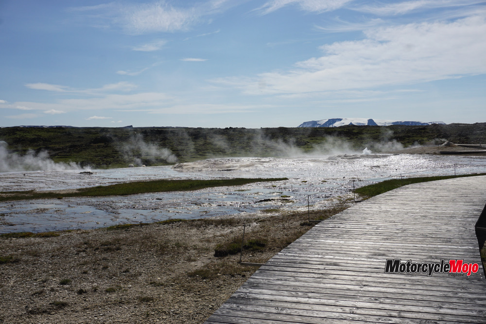 We departed Reykjavík, with the promise of finding some sunshine, but only found rain as we visited the Viking World museum, the Blue Lagoon and Geyser Gunna. We pulled in single-file to the geyser, attempting to create an orderly line of motorcycles.
