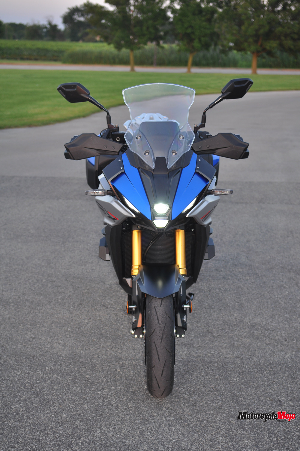 The more relaxed riding position is achieved with handlebars that are 55 mm closer to the rider and 50 mm wider than on the GT, and an added 15 mm in seat-to-peg distance, in essence maintaining a slightly more sporty geometry than on most ADVs. That sporty character is further enhanced with the 17-inch cast aluminum wheels front and rear wearing Dunlop Sportmax Roadsport 2 tires. (Without being judgmental, let’s be honest: like most SUVs, many ADV bikes never leave the pavement, and the smaller hoops cater nicely to the corner carvers.) The bike is not light, weighing in at 232 kg (wet, without the panniers), but as is often the case on a good machine, once rolling, the…