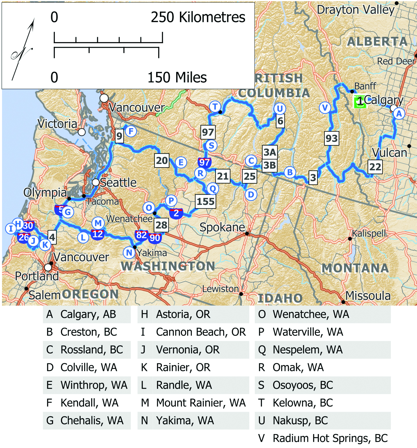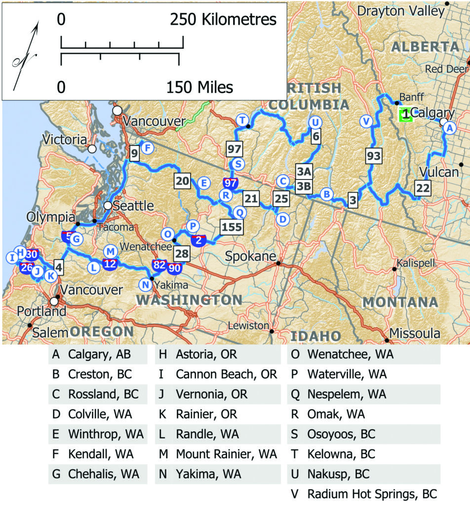 We planned to spend the first night in Colville, WA, which was a little more than 600 km away. A 9 a.m. start gave us plenty of time to make the planned border crossing at Nelway on Highway 6 west of Creston, B.C., before the 8 p.m. closure stated on the web.